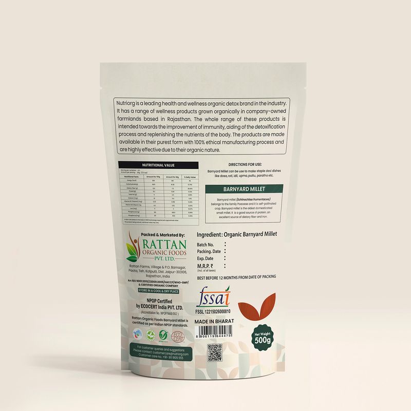 Organic Barnyard Millet 500gm (Pack of 3) – Nutriorg